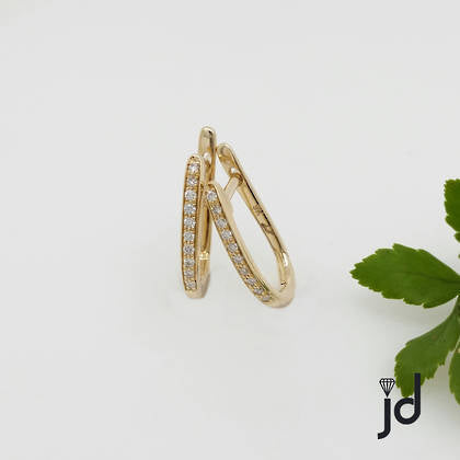Yellow gold and Diamonds, a stunning combination! These pave set oval huggie earrings are perfect for every occasion.