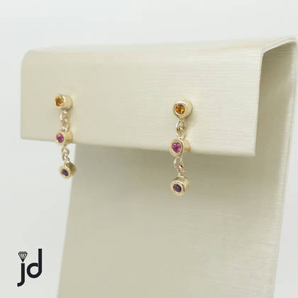 Handcrafted in yellow gold, these stud earrings feature Amethyst, Pink Tourmaline and Citrine. A stunning and stylish cascade of colour